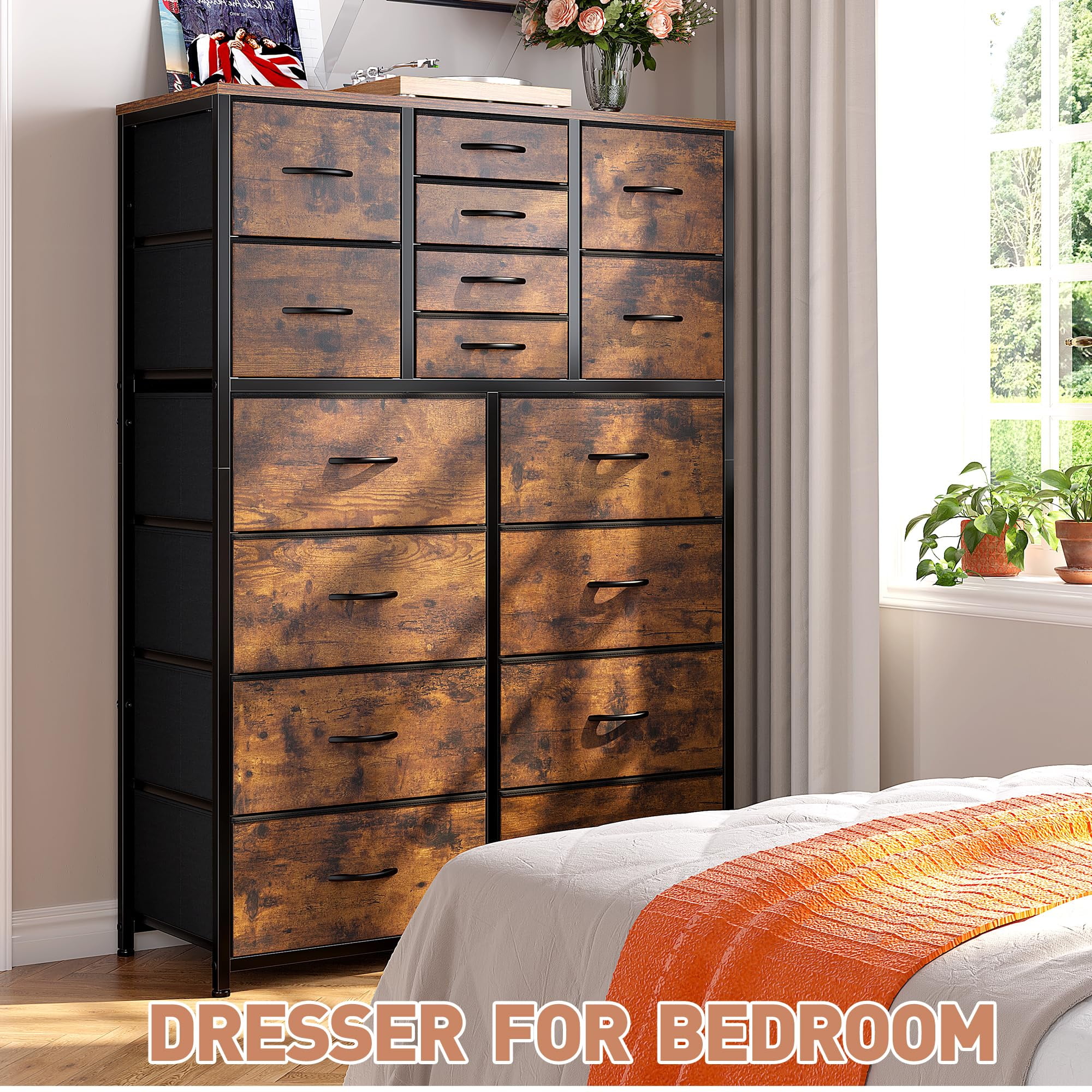 Enhomee Large Dresser For Bedroom Furniture Dresser With 16 Drawers Fabric Tall Dresser Closet Dresser Chest Of Drawers Clothes Storage Slim For Living Room Office Rustic Brown Wood Grain Print Walmart Com